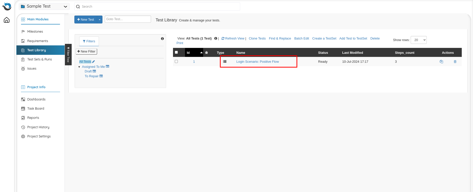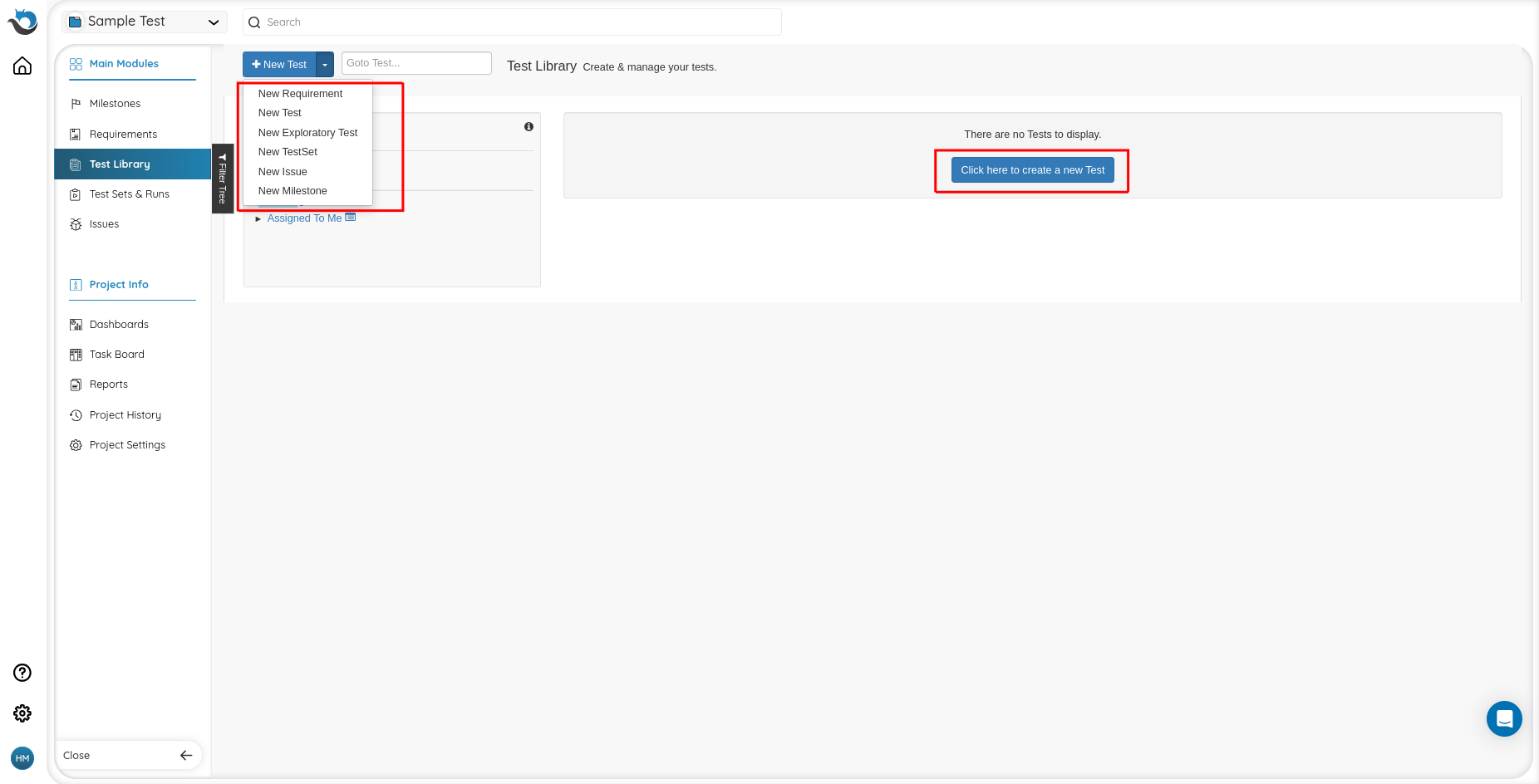 Step 1: To create a test case, click the Test Library link on the left side menu.